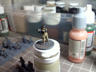 To that end, I am frustrated with my progress so far. I had decided to base them all in the Uniform Grey spray, and paint it up from there, as opposed to the more accurate "Green Grey" look. Honestly, they just look American with the green. Still, I am hesitant.
